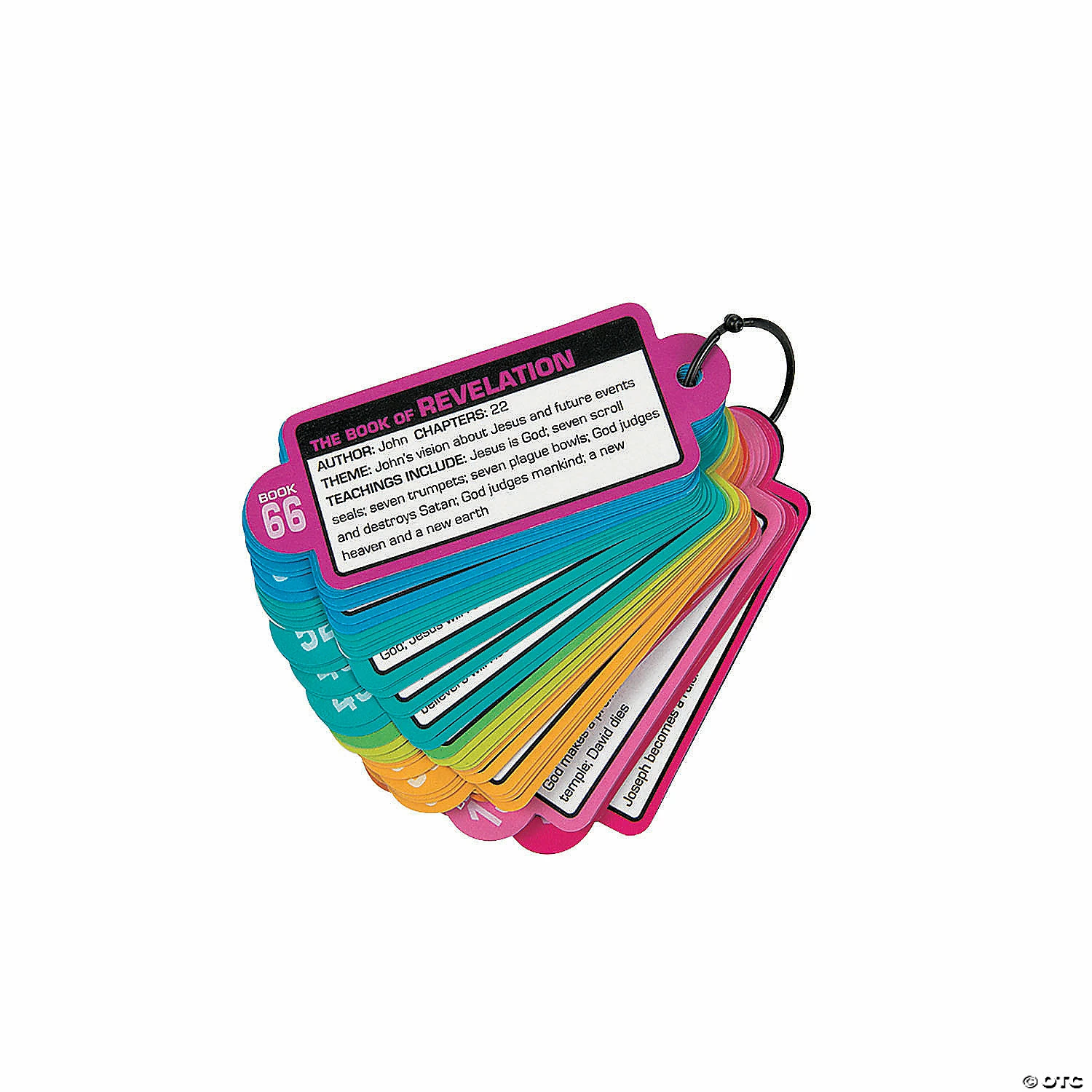 Faith is wonderful, but when partnered with knowledge it becomes even more powerful! Help kids learn more about Godโs Word with these Bible information cards. Each flashcard-styled information card teaches about each book of the Bibleโs authors, themes and messages. These information cards make learning the Bible easier for kids! Cardstock. Each set includes 66 double-sided cards on a plastic ring. (4 dozen/unit) 6 1/2″ x 2 1/2″ ยฉ OTC