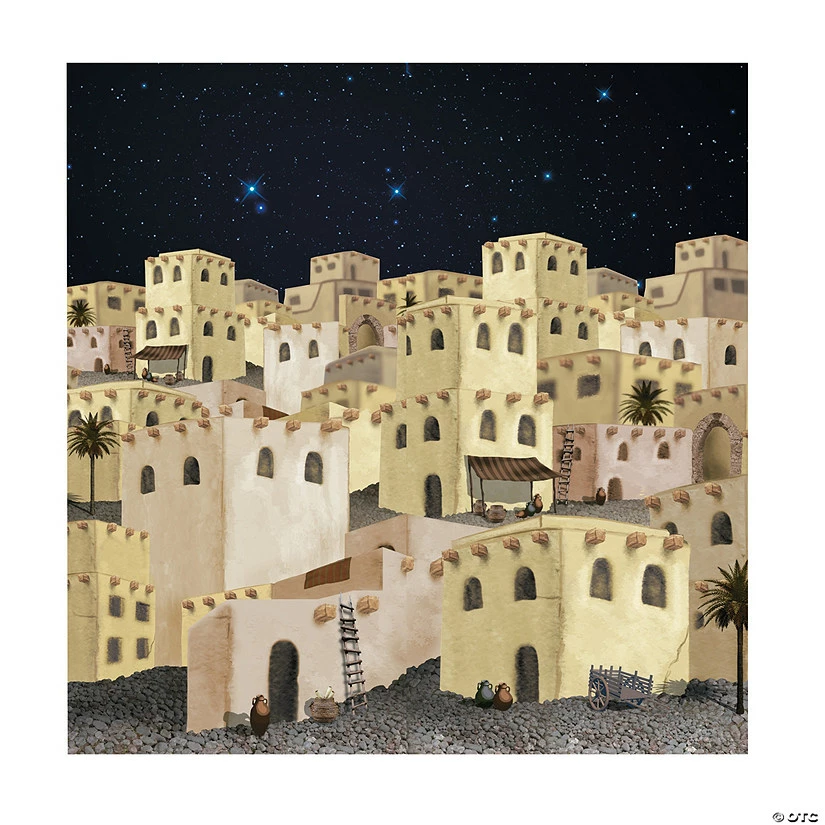 The simplest way to create a nativity scene for your church Christmas pageant! This Nativity Pageant Backdrop Banner is easy to set up year after year and adds a great touch to your Christmas decorations. Find more nativity supplies to match on our site. Plastic. 6 ft. x 6 ft. © OTC
