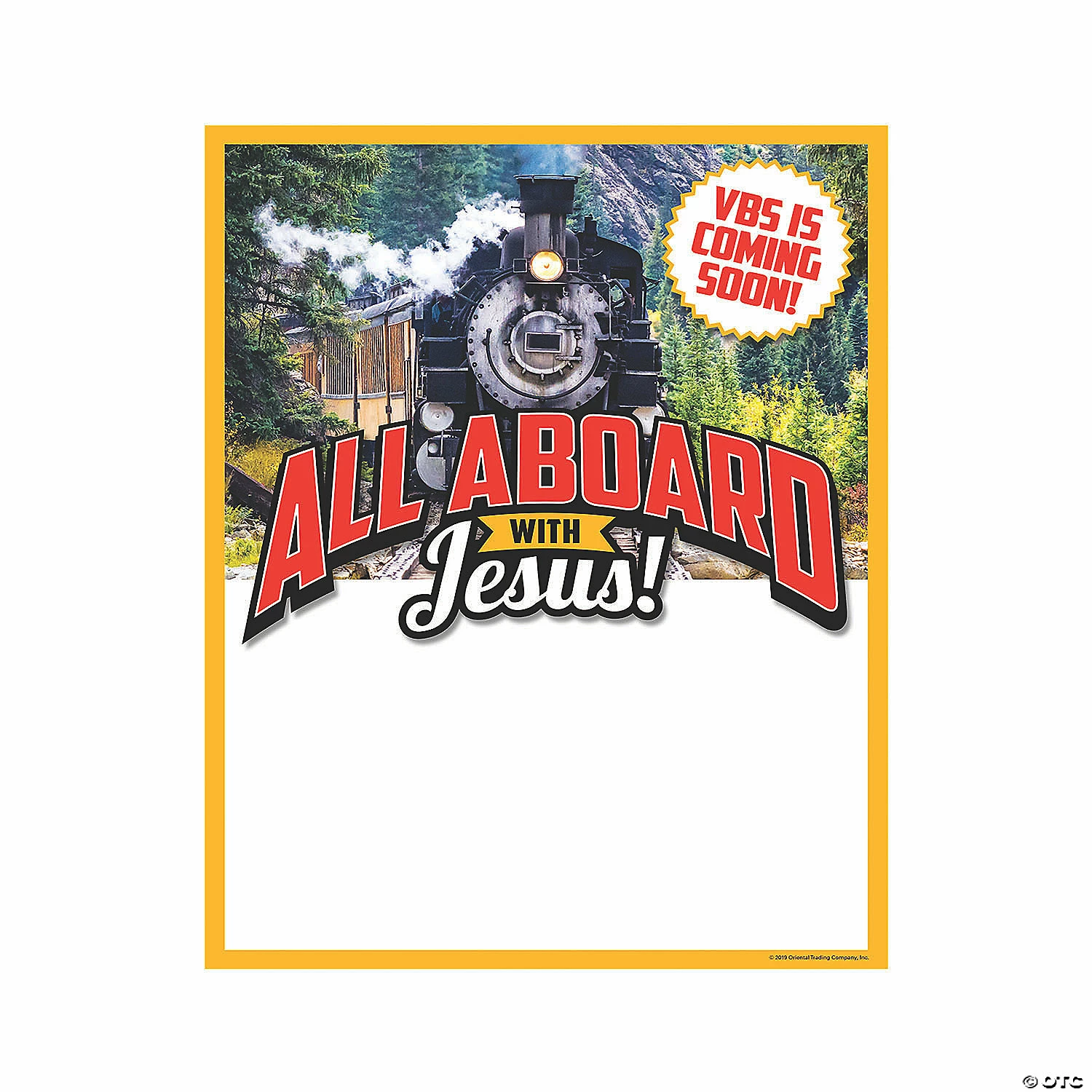 All aboard with Jesus! These exciting Railroad VBS posters announce the impending arrival of VBS at your church. Featuring a vibrant train image and plenty of blank space, your VBS coordinator can fill in all the details for those wanting to register children for Railroad VBS. Display these posters in high-traffic areas and be sure to put contact information on the poster to make it easier for people to reach out with questions. Paper. (6 pcs. per unit) 17″ x 22″ © OTC