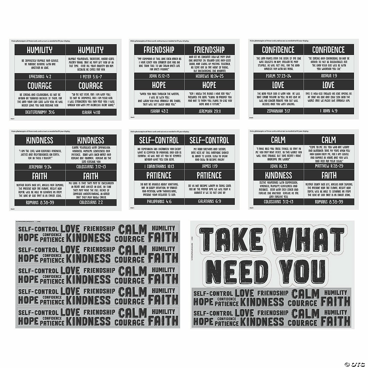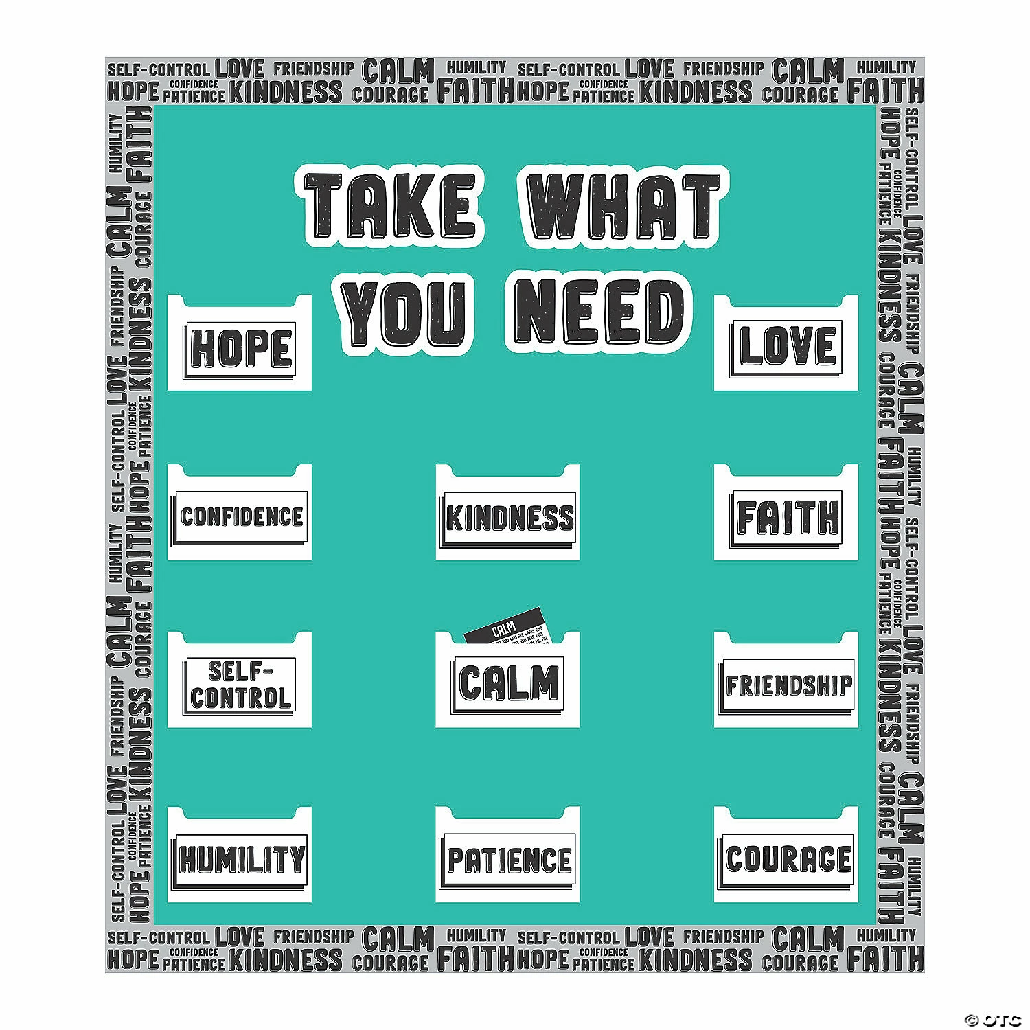 We all need a helping hand from time to time! This bulletin board set allows students to select the help they feel they need most in challenging times, choosing from such options as kindness, faith, love, friendship and more. They can then pick a card from the envelope and read the Bible quote for inspirational advice. Great for perking up your Vacation Bible School or Sunday school classroom! Includes seven 26″ x 3-1/4″ border pieces, six 8″ x 11″ sheets with 24 cards total, eleven 9″ x 6-3/4″ laminated envelopes and 4 die-cut pieces. Cardstock. (28 pcs. per set) ยฉ OTC